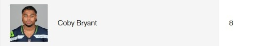 海鹰队内有一位防守后卫,名叫科比·布莱恩特(CobyBryant),其名字的发音和已故NBA传奇巨星科比(KobeBryant)一样,且他的球衣号码也是选择了8号球衣。